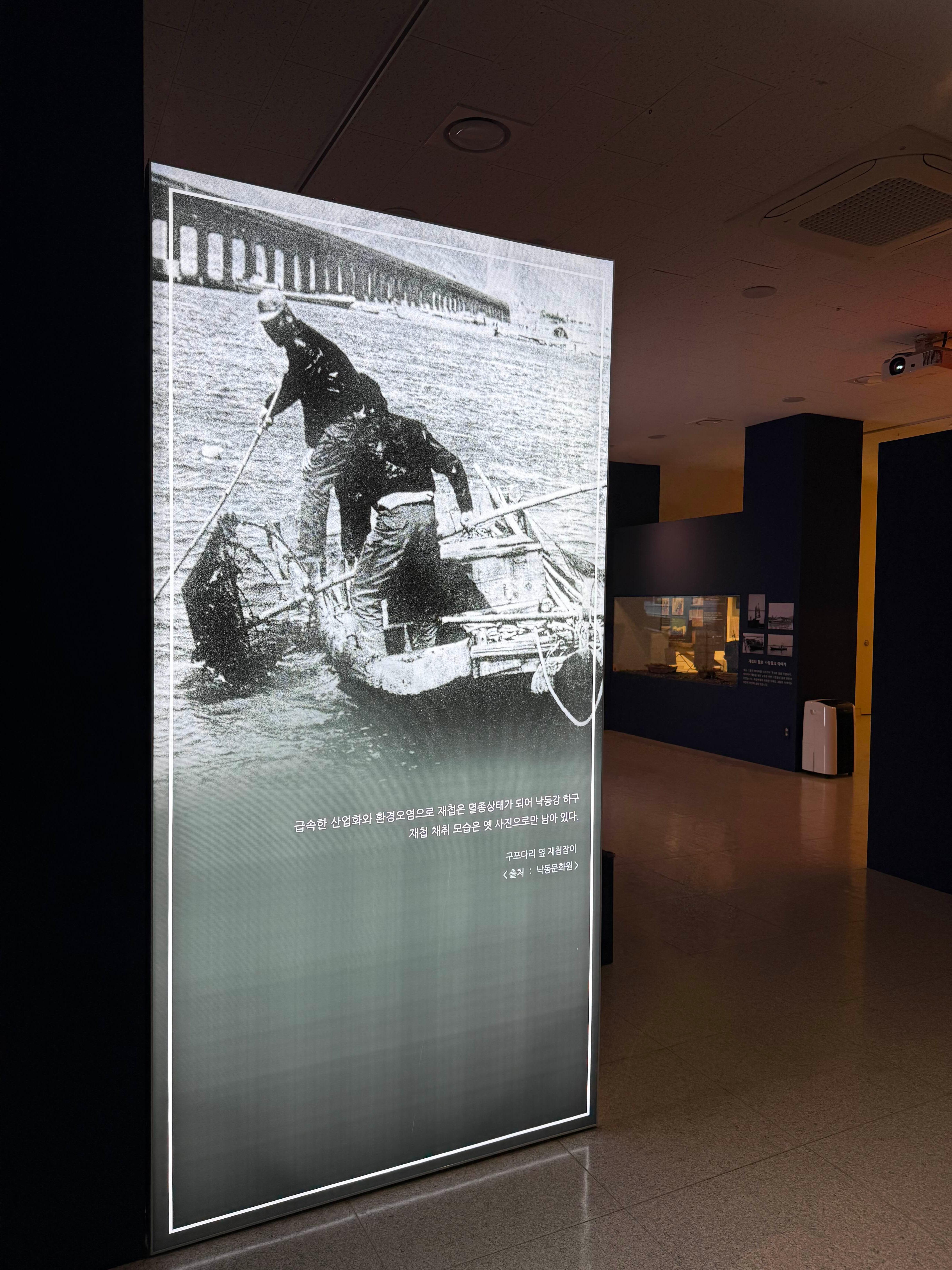 또한 한쪽에는 기획 전시실이 마련되어 있어, 계절마다 다른 특별한 테마의 전시가 열린다고 한다. 현재는 '재첩국' 전시로 어릴 때 들은 거 같은 '재첩국 사이소' 하는 추억이 울리고 있었다. 같이 간 친정엄마도 예전에 많이 들었던 소리라고 ت