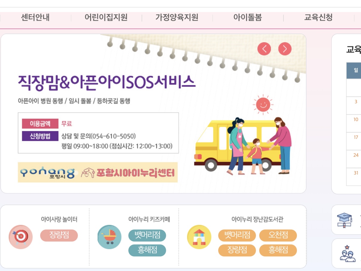 https://www.phcare.or.kr 사이트 메인, 아이누리키즈카페 흥해점에 들어가면 예약 가능한 시간이 뜨고 혹시나 원하는 날짜가 있다면 3일전에 예약창이 열리니 참고하세요!